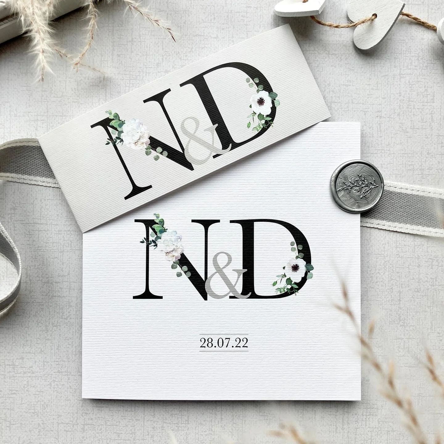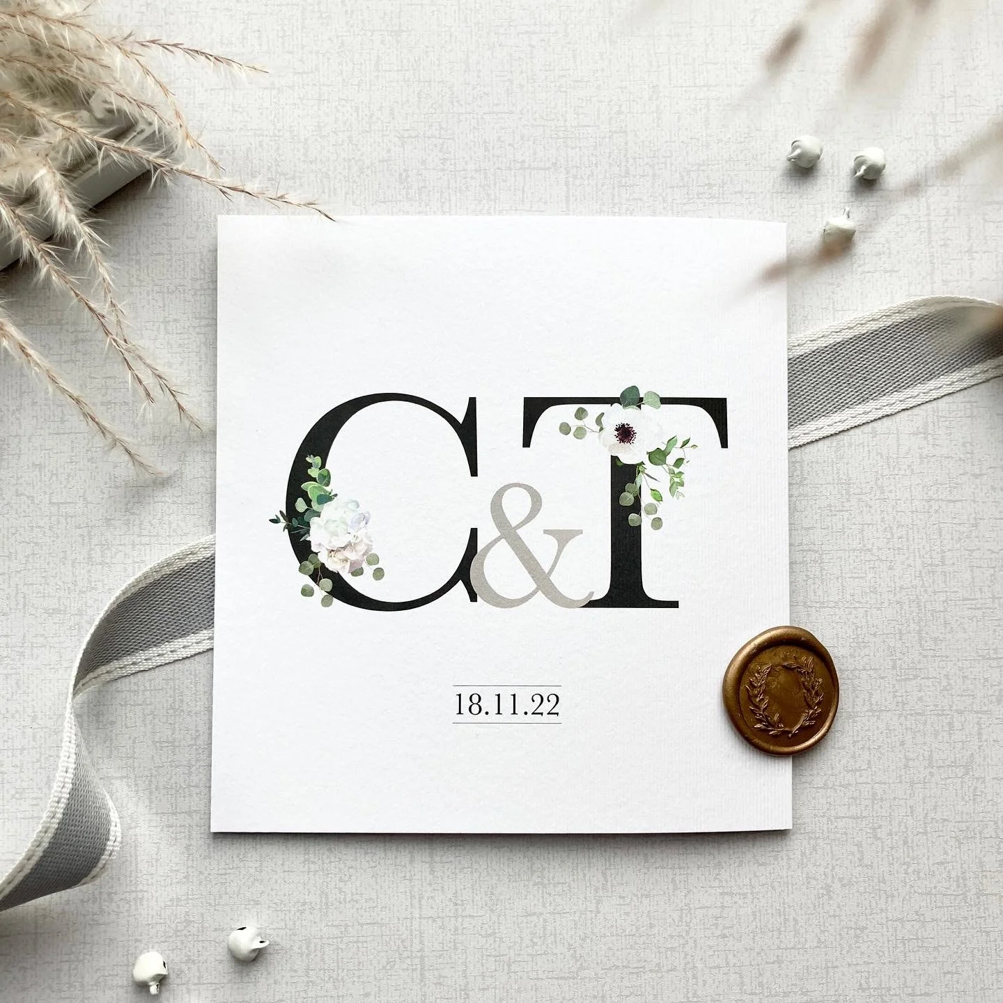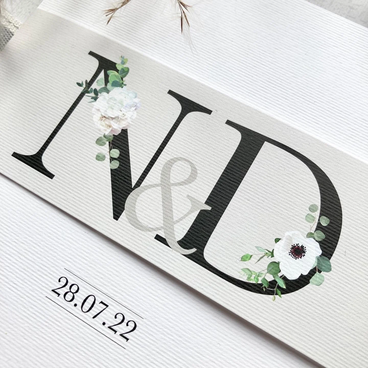 Mixing beautiful white and green florals with black initials.