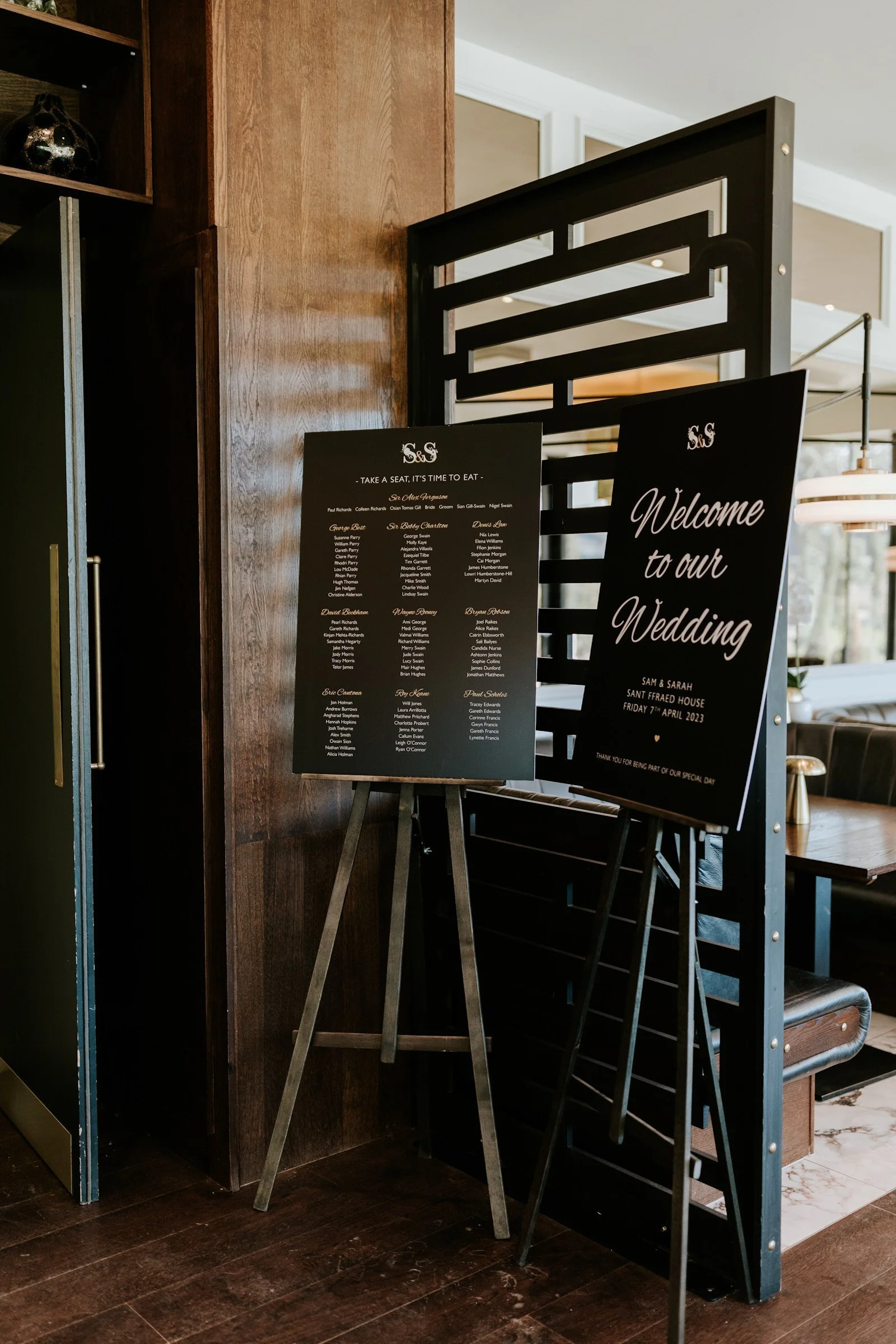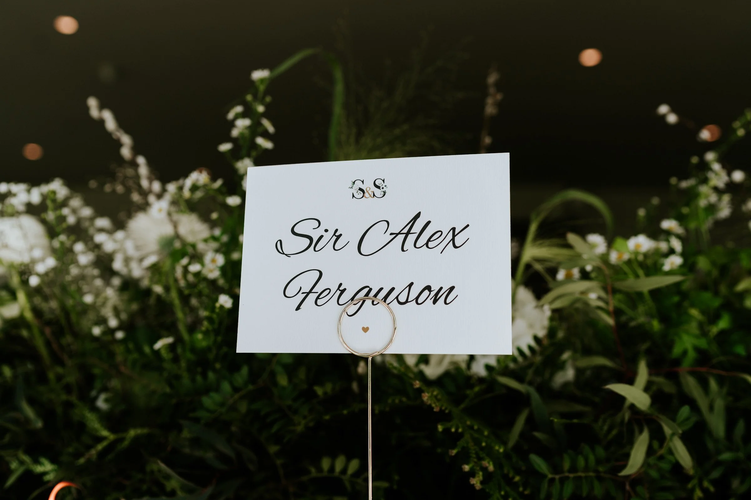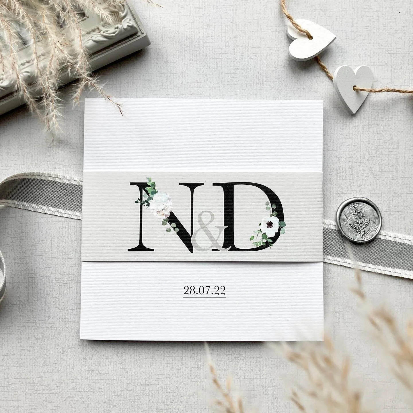 Mixing beautiful white and green florals with black initials.